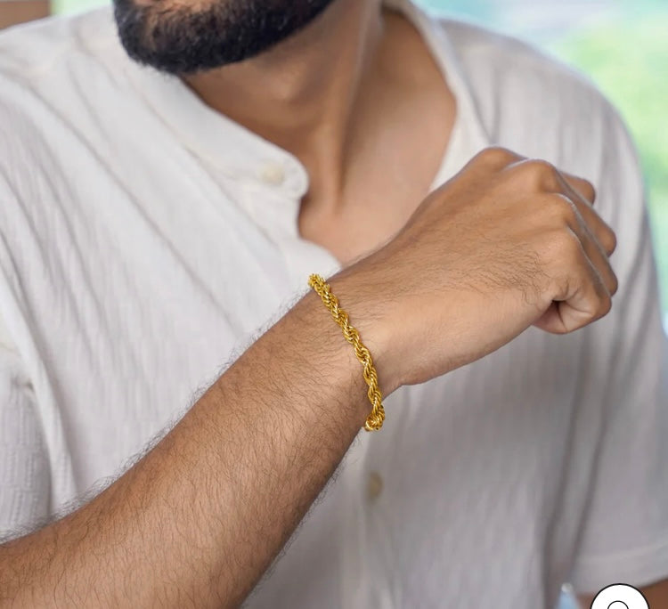 Elevate your style with our 18k Gold Plated Rope Bracelet. Crafted with high-quality materials, this bracelet adds a touch of elegance to any outfit. Experience the luxurious look and feel of 18k gold without the high price tag. Upgrade your accessory game with our exquisite Rope Bracelet.