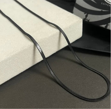 Crafted from high-quality stainless steel, our Black Sleek Snake Chain is the perfect addition to any outfit. Its sleek design adds a touch of elegance while its durable material ensures long-lasting wear. Elevate your style and make a statement with this must-have accessory.