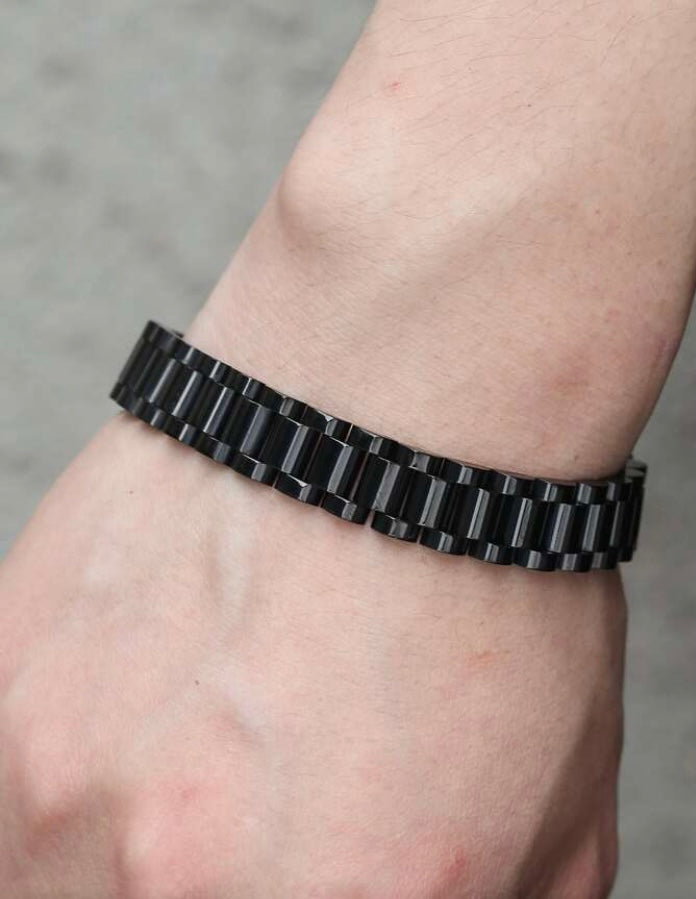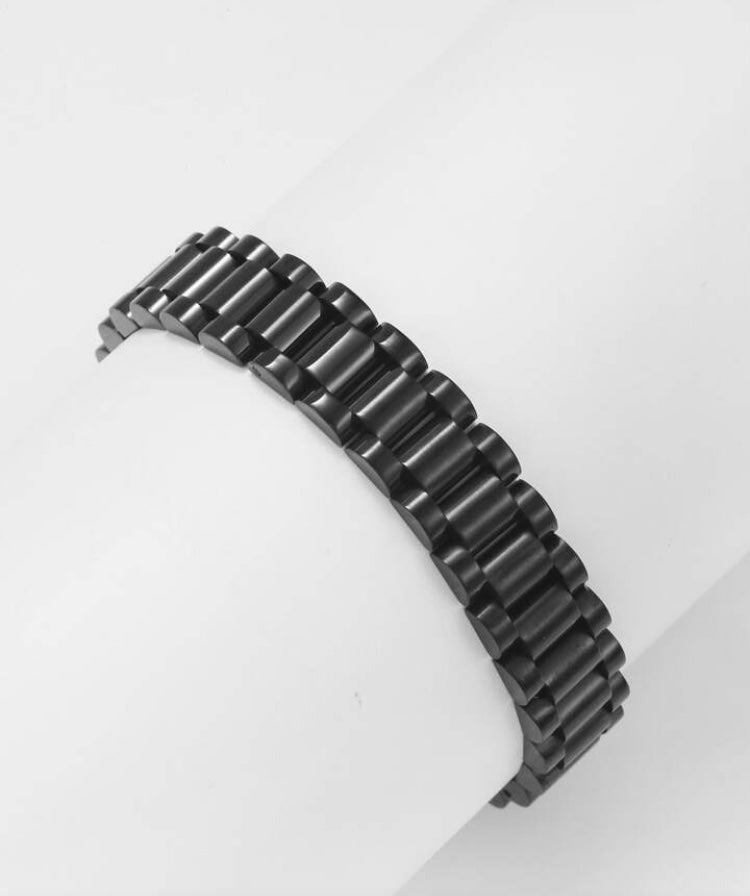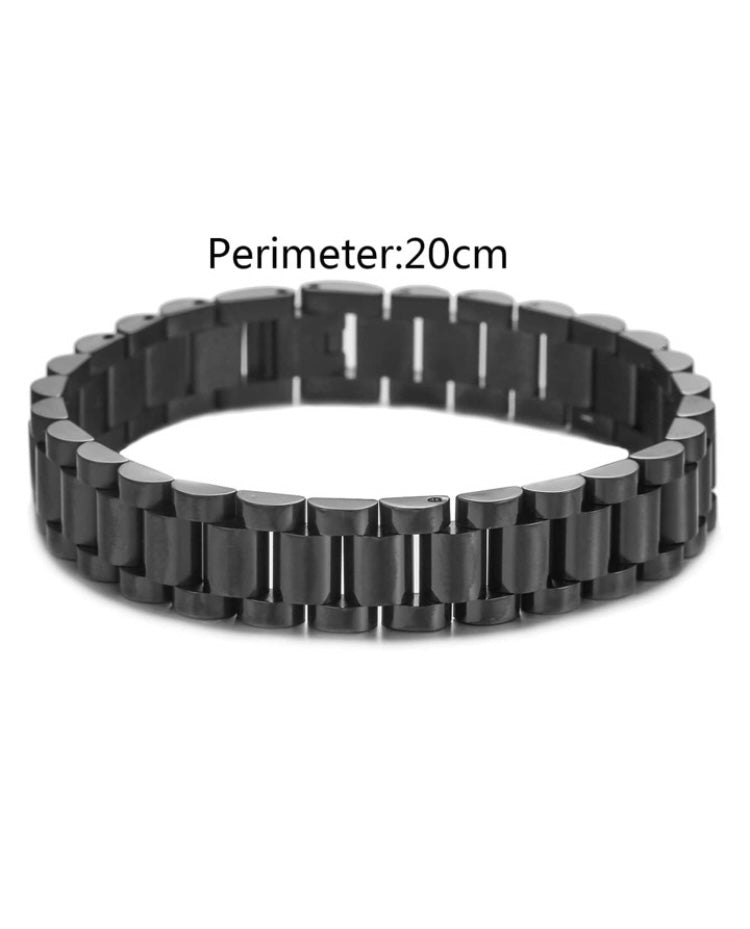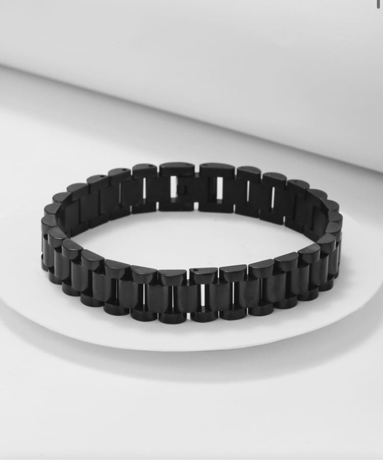 Crafted from durable black stainless steel, this bracelet is both stylish and strong. Its sleek design makes it perfect for any occasion, while its material ensures long-lasting wear. Elevate your look with this versatile accessory.