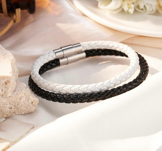 Crafted from high-quality leather, this Couple Premium Leather Bracelet is the perfect accessory for couples. With its premium materials and stylish design, it adds a touch of elegance to any outfit. Symbolize your strong bond and commitment with this beautiful bracelet.