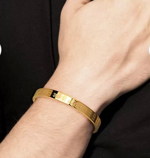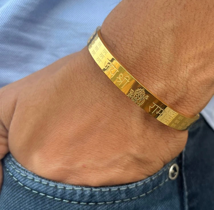 This adjustable Jai Shree Ram Kada is made of waterproof stainless steel, ensuring durability and resistance to tarnishing and fading. Perfect for religious ceremonies, it adds a touch of spirituality to any outfit. Crafted with expertise, it is a timeless piece that will last a lifetime.