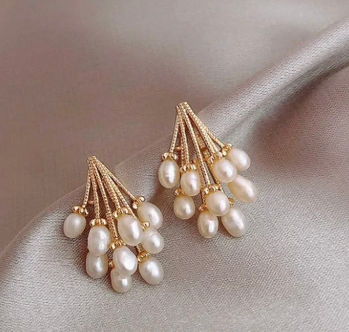 These elegant Pearl Bunch earrings are the perfect addition to any outfit. Made with a cluster of lustrous pearls, they add a touch of sophistication and class to your look. Handcrafted with care, these earrings are a timeless piece that will never go out of style.