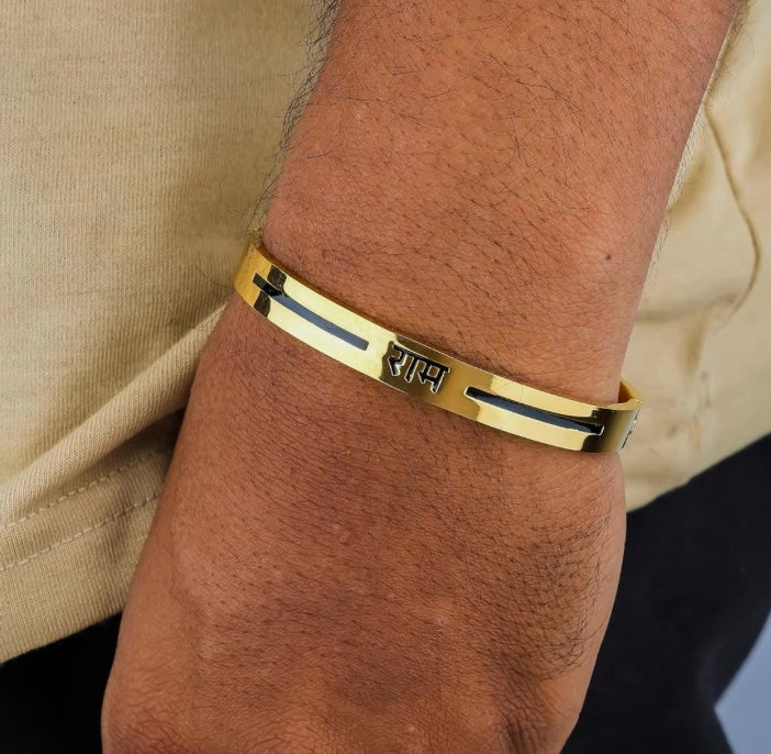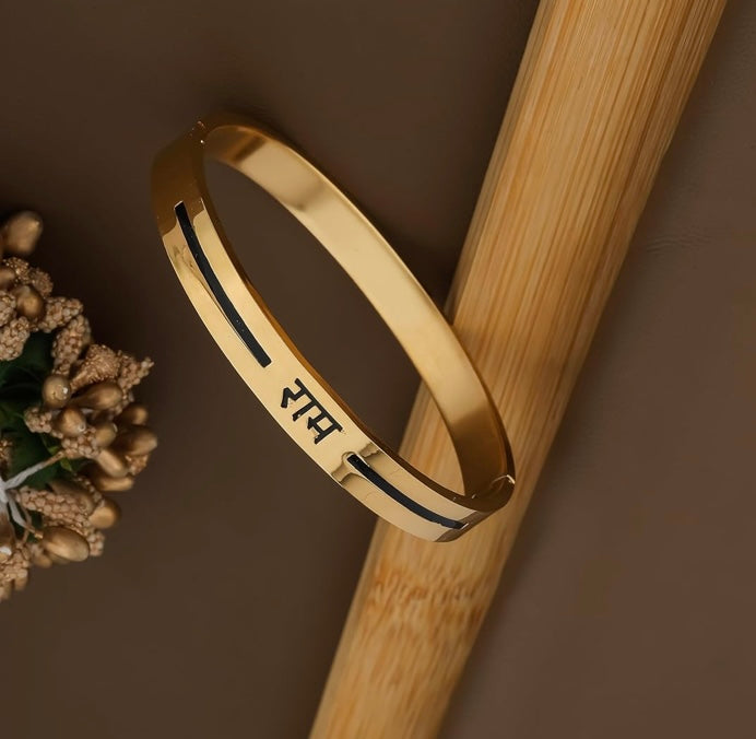 "This Ram Kada is expertly crafted with 18k gold plating, making it both anti tarnish and waterproof. Its hypoallergenic and skin safe properties provide reassurance for sensitive skin. Experience the combination of style and functionality with this must-have accessory."