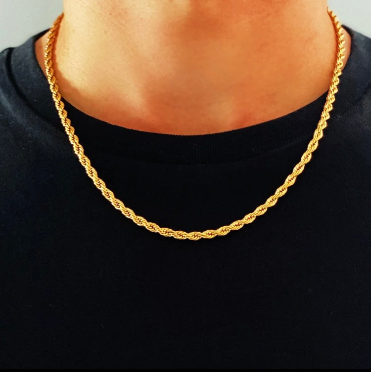 This 18k gold plated Twisted Rope chain is not only stylish, but also waterproof and anti-tarnish. The perfect combination of durability and elegance, giving you the best of both worlds. Say goodbye to tarnished jewelry and hello to worry-free wear.